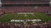 Enrollment in this year’s “Million Dollar Band” is up by about 55 members, totaling the band’s numbers at 350 ?? 55 auxiliaries and 295 musicians. The group features four drum majors: Marc Sosnowchik (Head), Travis Bender, Rebekah Wiggins and Nathan Tucker. During the season, the band practices every day from 4:00 to 5:30 p.m., with a two-hour rehearsal on game-days.
