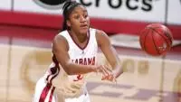 Alabama had three players in double figures in the scoring column, led by senior Navonda Moore, who finished with 15 points. Moore, who was honored before the game with a ceremonial ball recognizing her 1,000th career point that she scored on Dec. 30, added seven rebounds despite fouling out with over eight minutes to play.