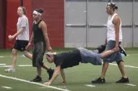 Stretch the Limit was the next team-building exercise. The two teams had to move from one cone to the other while maintaining contact with their teammates or with three inanimate objects while touch both cones, set 12 yards apart. Each team had to stay linked the entire time.