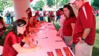 TUSCALOOSA, Ala. -- The 2008 edition of the Alabama Gymnastics team signed team photos and gave away a poster featuring the NCAA Champion duo of senior Terin Humphrey and sophomore Morgan Dennis on the Quad Saturday before the Alabama-Georgia football game.